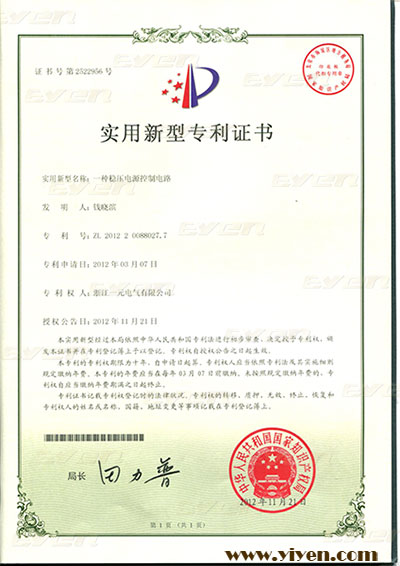 穩壓器電路專利證書