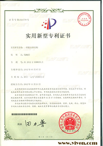 穩壓器結構專利證書