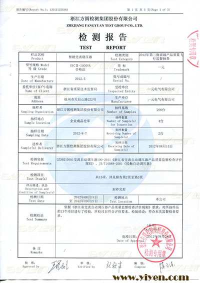 智能穩壓器方圓檢測合格報告